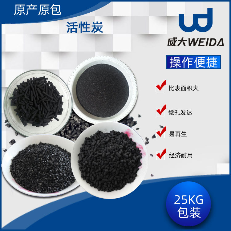 威大果殼活性炭是以高品質杏殼及核桃殼為原料,經干燥、炭化和高溫水蒸氣活化后精制加工而成的高吸附性能活性炭。外觀為黑色不定型顆粒。